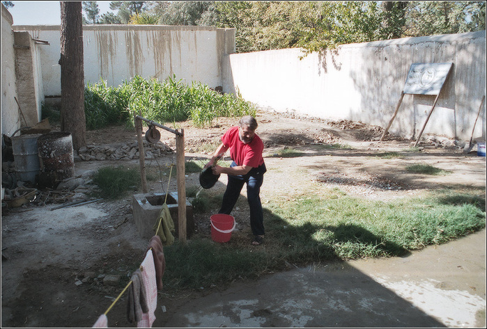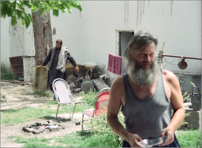 Будни заложников: командир Шарпатов поливает раскаленный и пыльный двор своей тюрьмы...