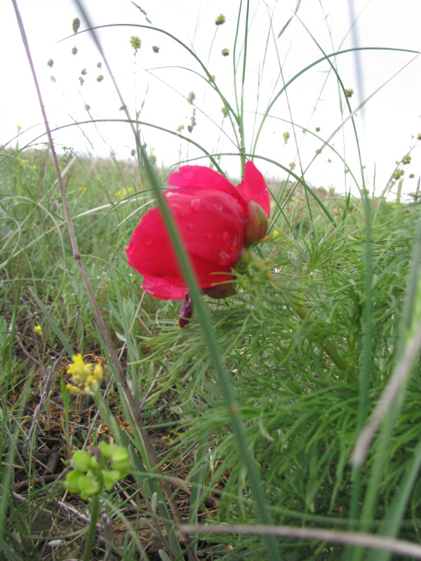Дикие пеоны (если ошибаюсь поправьте). Весной вся гора зацветает такими крупными красными цветами - красота неописуемая. Жаль они уже отходили.